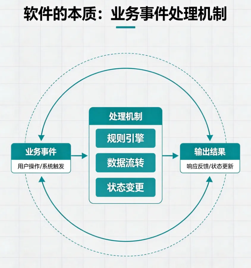 AI 时代,软件的价值不再是“被安装在那里”,而是“在关键业务事件发生时,能够生成能力、完成动作、留下证据、持续进化”。