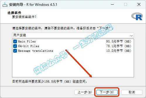 2.打开刚刚解压的文件夹,鼠标右键点击【R-4.5.1-win.exe】选择【以管理员身份运行】