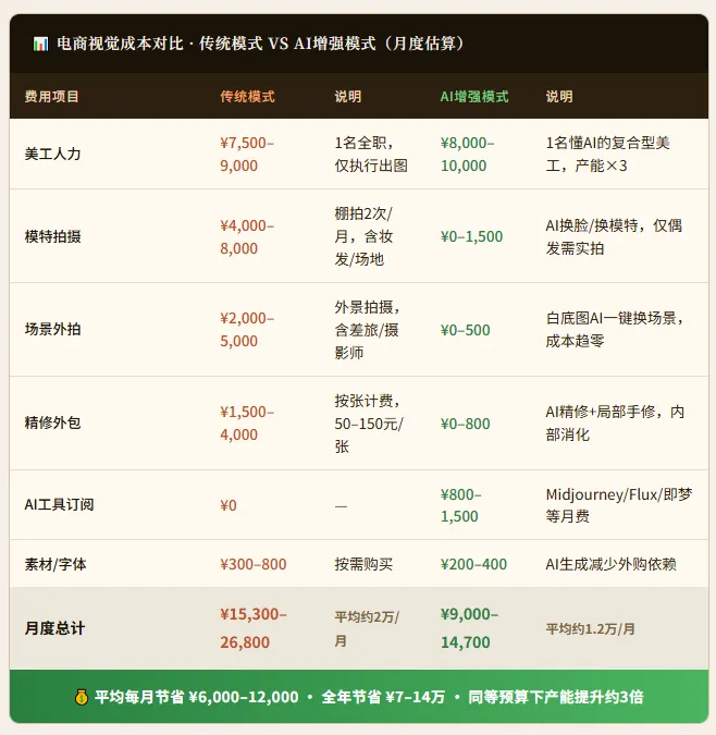 很多电商老板从来没有认真拆解过视觉团队的成本结构。钱一个月月付,感觉还好,但把账摊开来看,触目惊心。