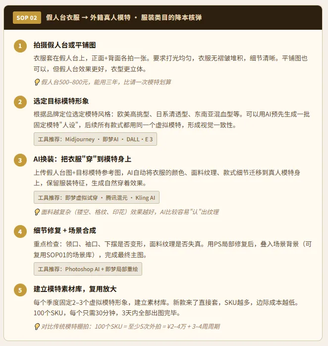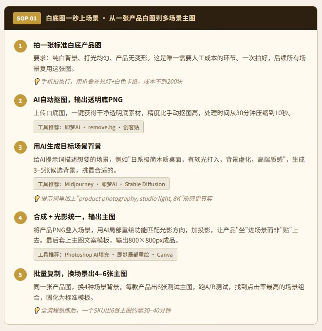 说了这么多,来点干货。以下两个场景是电商视觉里最高频、最耗时、最费钱的,现在完全可以用AI流水线化。