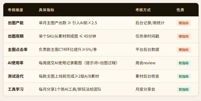 管理AI时代的美工,核心逻辑变了:以前考核做了多少,现在考核用AI做了多少 + 数据结果是什么。产能和数据,两手都要抓,缺一个都是耍流氓。