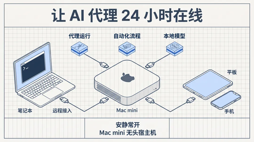如果你也遇到过这些问题,那你需要的往往不是更大的显卡,而是一台适合 7×24 小时在线、安静待命、还能远程管理的宿主机。到了 2026 年,Mac mini 恰好补上了这个位置。