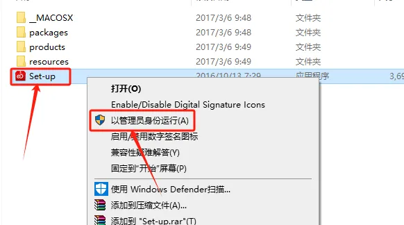 5.鼠标右击【setup】安装程序,选择【以管理员身份运行】。