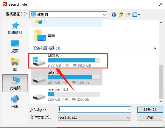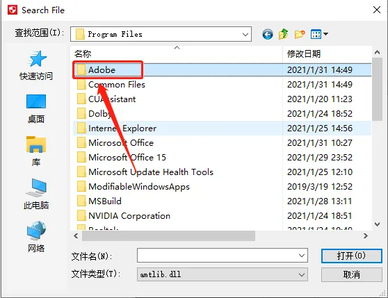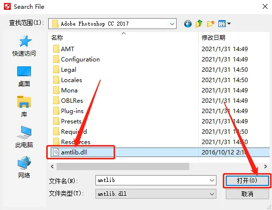 17.找到并选中【amtlib.dll】文件,然后点击【打开】。