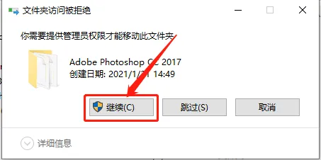 21.鼠标右击【Adobe Photoshop CC 2017】文件夹,选择【剪切】。
