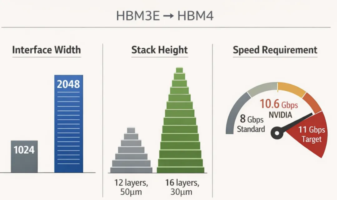 真正决定 2026-2027 年格局的变化,不在市占率数字的小数点后面,而是HBM4。因为HBM4 不只是 HBM3E 的下一代,是整个供应链权力结构被重新洗一遍的起点。