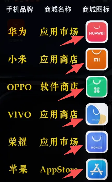 一、根据你用的手机品牌,找到上面表格里对应的官方下载商城,点击打开