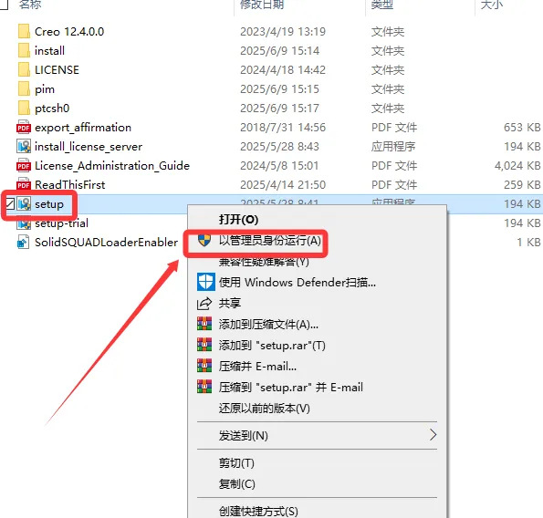 11. 回到安装包文件夹,选中Setup文件点击鼠标右键选择以管理员身份运行。