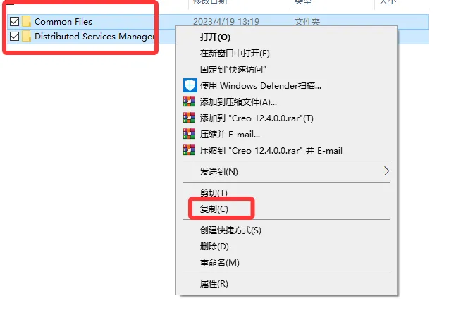 23. 选中该文件夹下的两个文件夹,点击鼠标右键选择 复制。