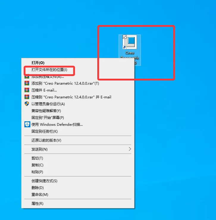 24. 桌面选中Creo Distribut……图标,点击鼠标右键选择打开文件所在的位置。