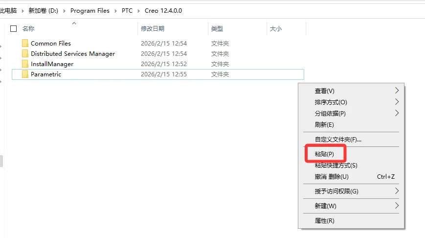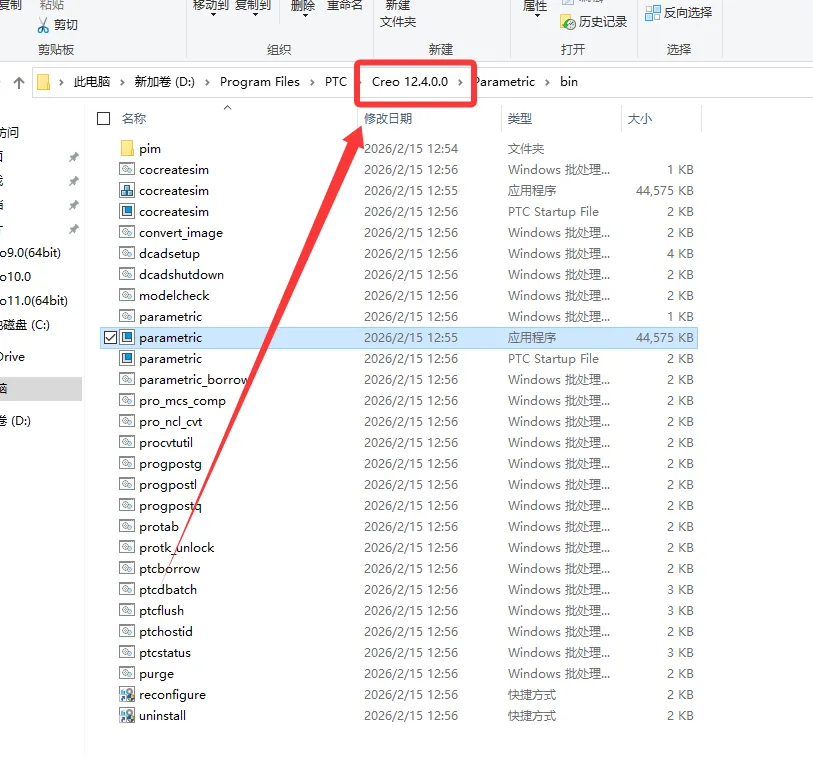 25. 点击路径地址中的Creo12.4.0.0。
