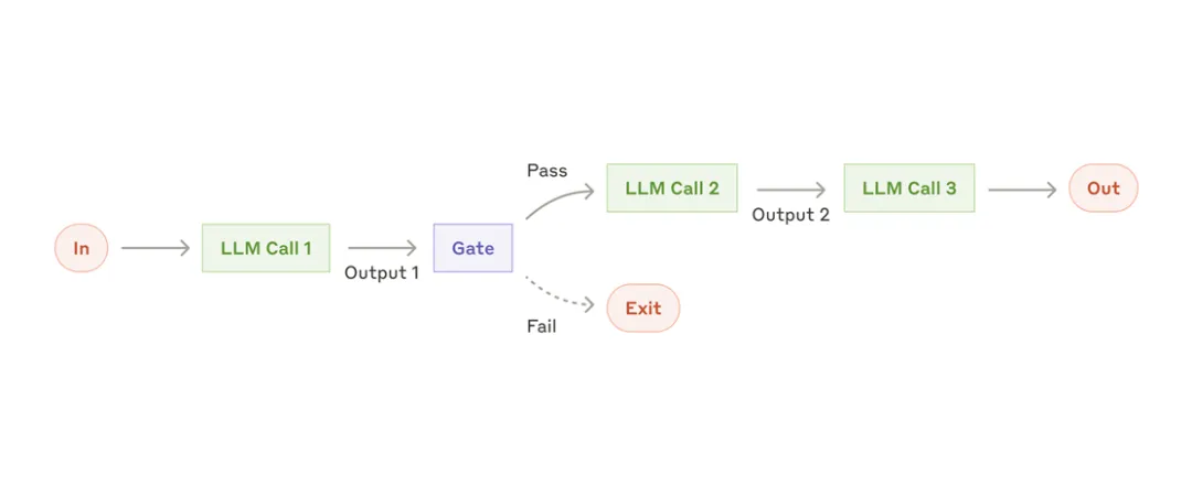 图1 Anthropic 的 prompt chaining 工作流:把一个复杂任务拆成若干有顺序的步骤,中间可以插入 gate 检查。
