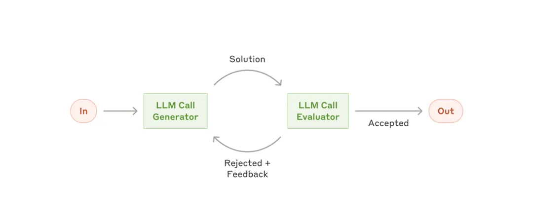 图3 Anthropic 的 evaluator-optimizer 工作流:一个负责生成,一个负责挑错和反馈。