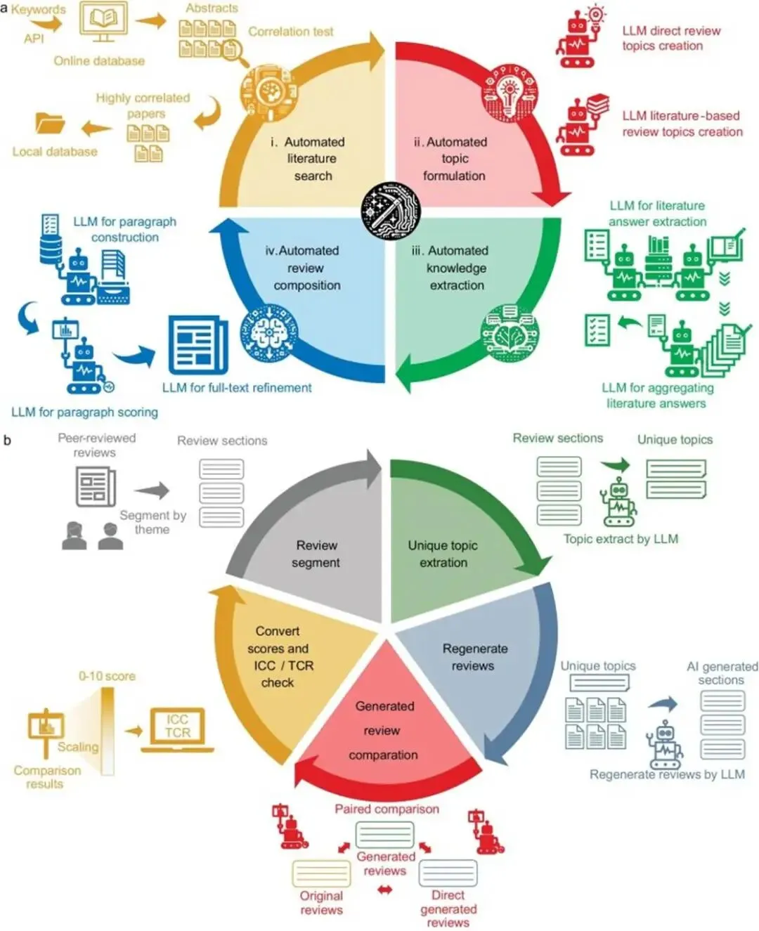 另一篇开放获取文章 **Automated literature research and review-generation method based on large language models** 更进一步。它不是只讲理念,而是把自动综述写作做成了一条可验证的方法学流程。
