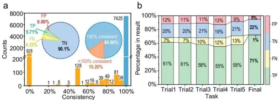 图7 自动综述生成中的幻觉控制结果:作者专门评估了直接生成与聚合后结果的一致性和误差。