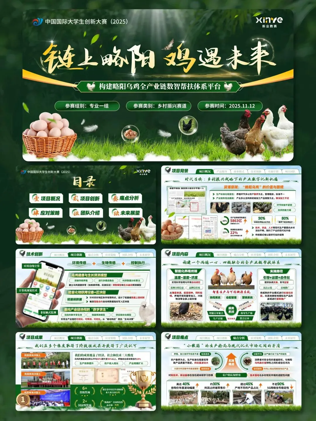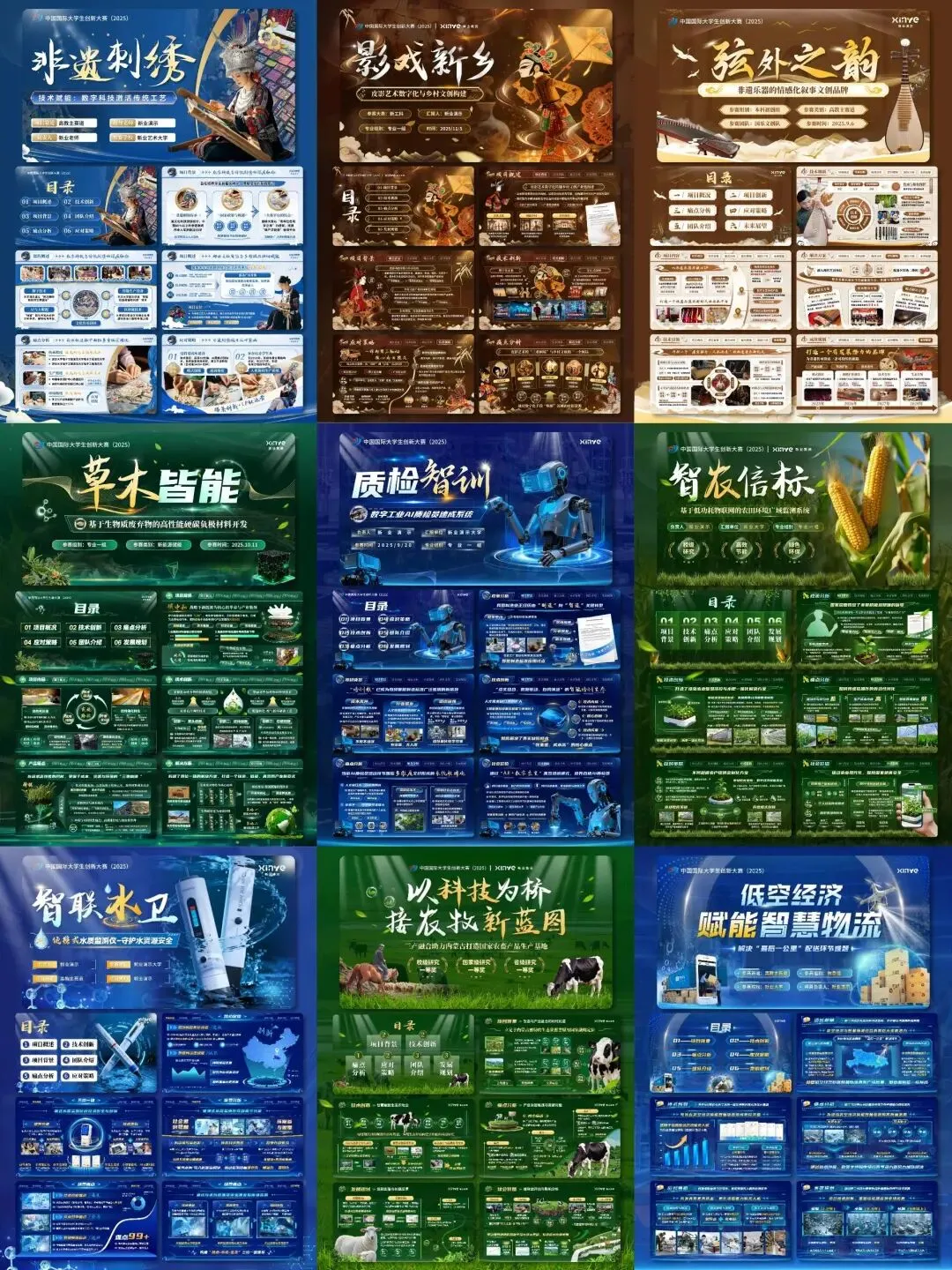 今天给大家分享的是创赛的精选高端PPT模板,高教/红旅/产业命题全覆盖,新工科、新医科、新农科、新文科,乡村振兴、公益帮扶、非遗活化、农产品电商、乡村文旅项目等,覆盖公益组、创意组、创业组。