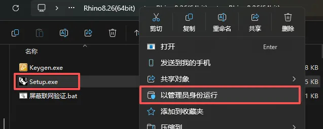 2、选中【setup.exe】,鼠标右键【以管理员身份运行】