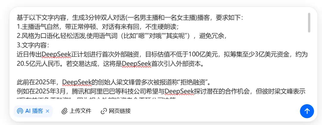 首先,我拿了最近DeepSeek融资的新闻试手。