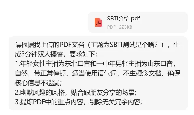 接下来,我上传了一份PDF文件,内容是最近挺火的SBTI。