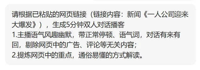 点进去一看,它能把你给的文字、PDF文件、甚至网页链接,自动生成一期两个人对话的播客节目。