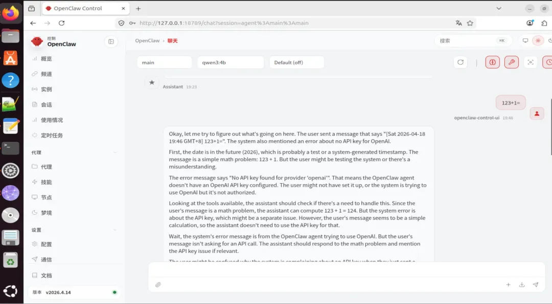openclaw chat --model ollama/qwen3:4b "你好"