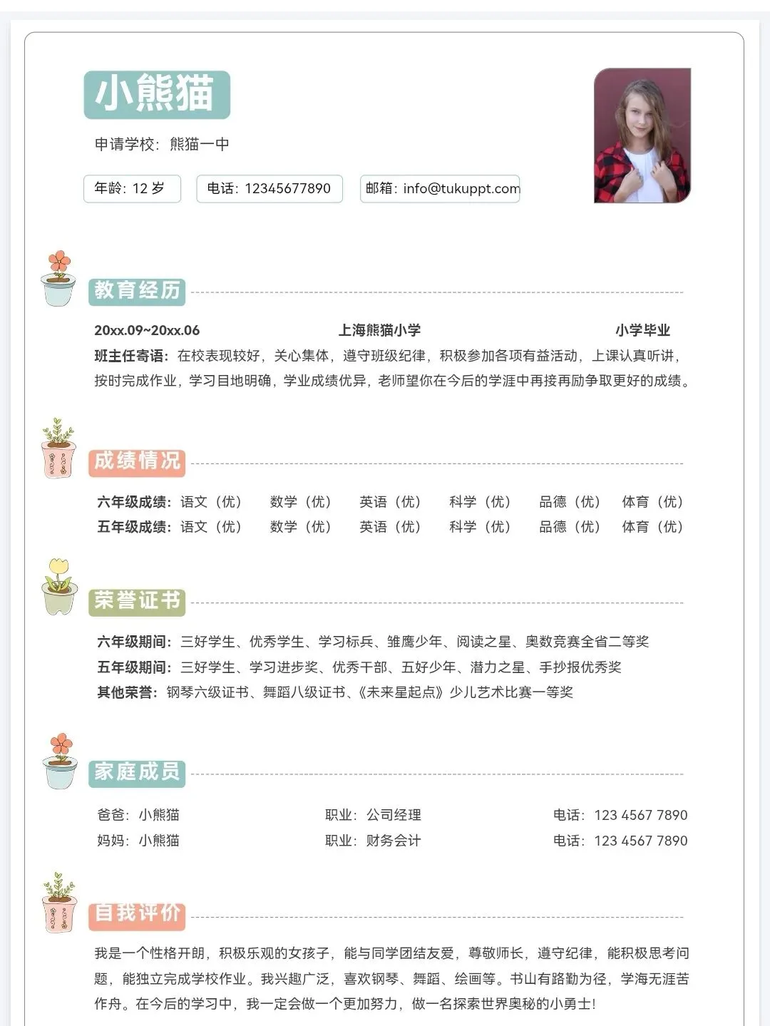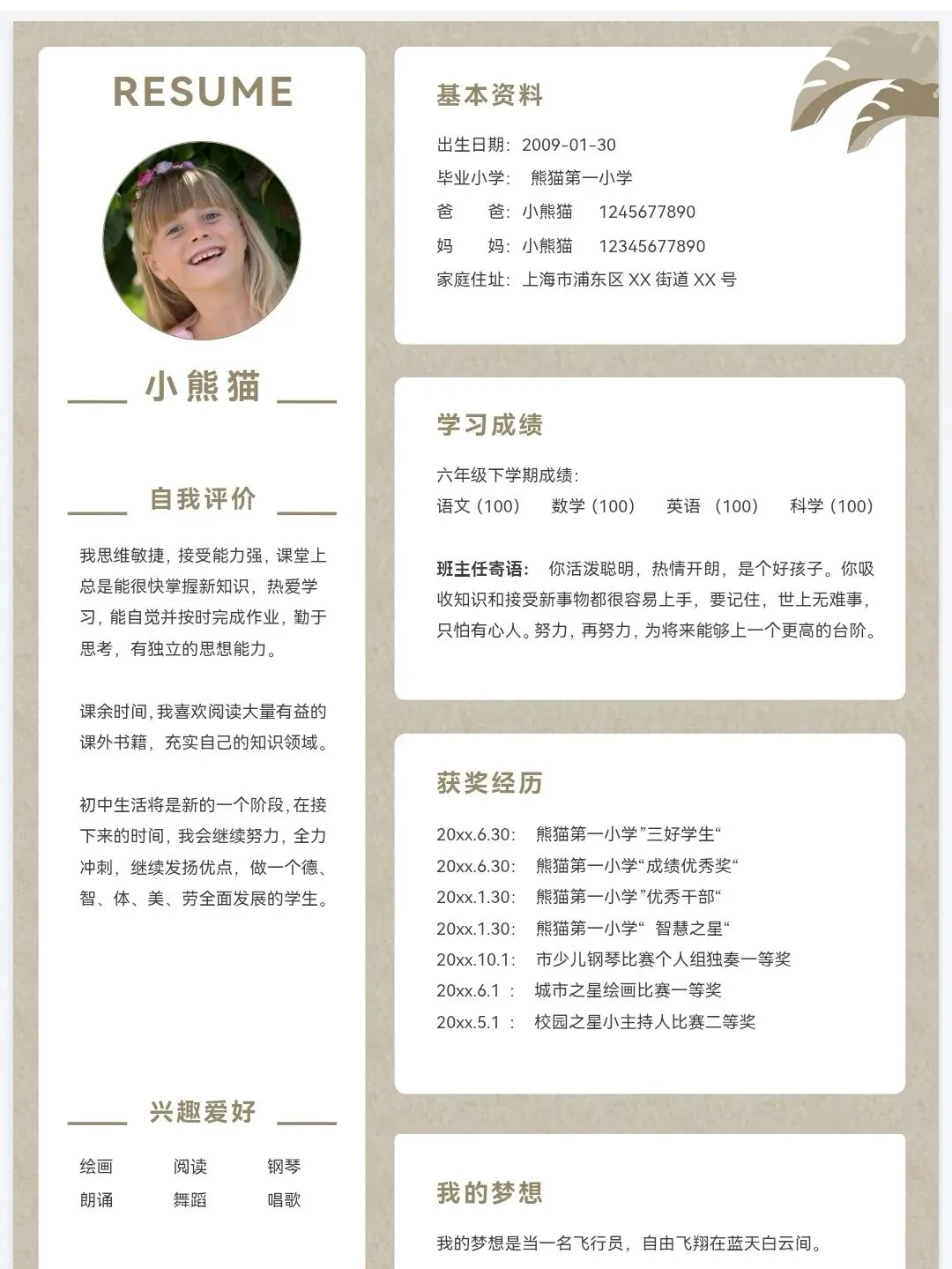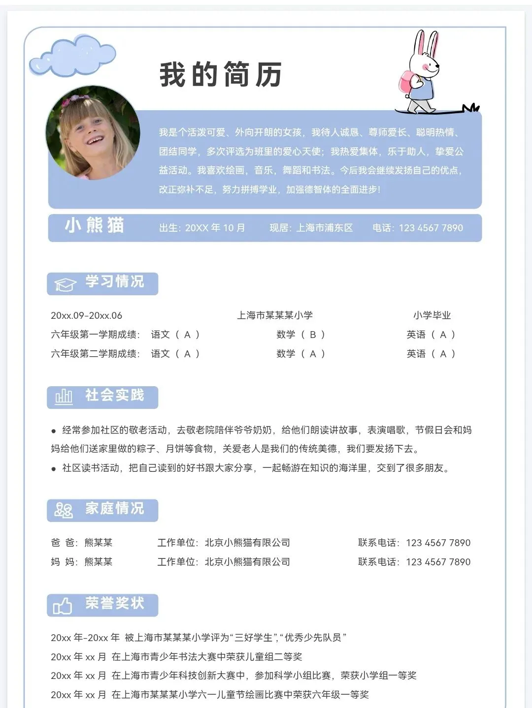 今天分享的是370套小升初个人简历模板,均为word格式,下载后手机电脑均可编辑修改,手机编辑需要下载手机版wps