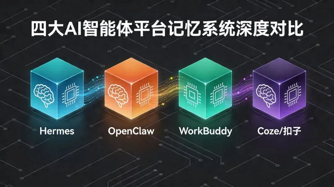 2026年第一季度,AI Agent领域迎来爆发式增长。Nous Research的Hermes以"自我进化"概念横空出世,OpenClaw生态持续扩张,腾讯WorkBuddy正式入局桌面端,扣子2.5则将战场延伸至Agent World网络。三家巨头与开源社区的角力,核心问题只有一个:智能体如何记住一切。本文从记忆系统架构出发,对四大平台进行横向拆解,并探讨Hermes的设计理念对现有系统的启示。