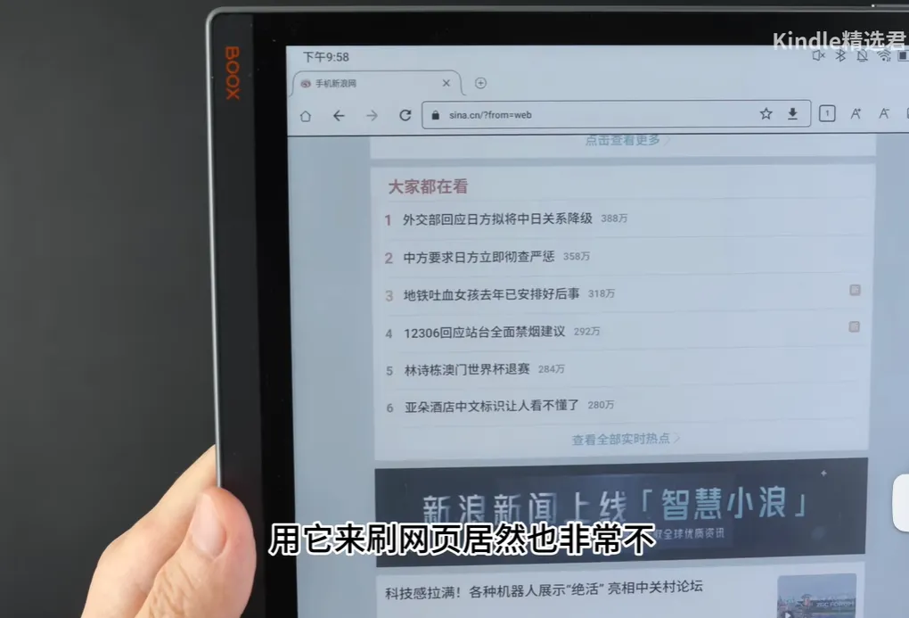 没有对比就没有伤害。我在Kindle和文石上打开同一个网页,向下滑动。你能明显感觉到Kindle这边的迟钝,画面一卡一卡的。而T10C+,画面几乎是贴着手指在走。离近了看,残影也控制得很好。