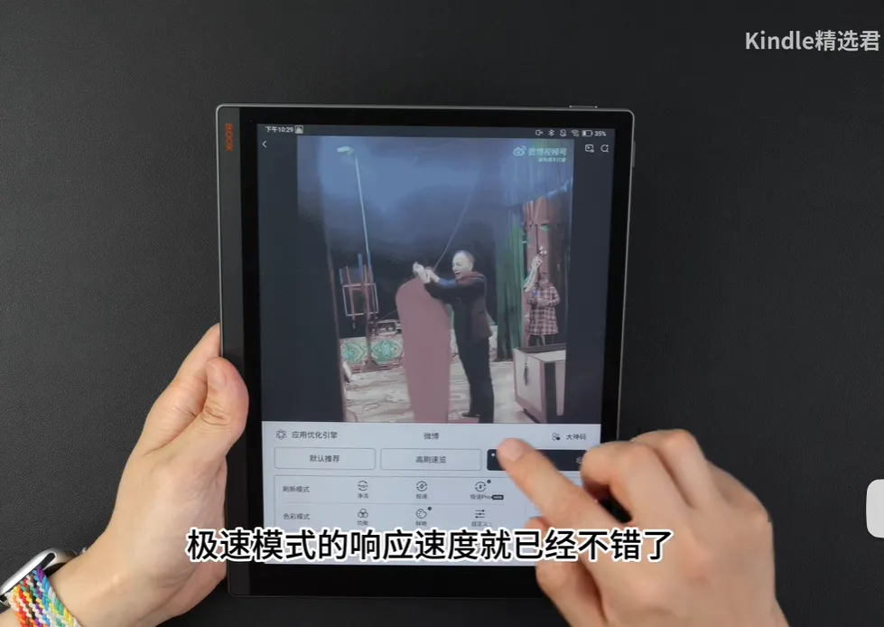 这次还增加了一个响应更快的极速pro刷新模式。其实我觉得极速模式的响应速度就已经不错了,但你要想用它看视频,或者玩玩休闲游戏,可以试试极速pro模式。不过我也发现了一个bug,播放视频时会自动锁屏,已经反馈给了官方工作人员。