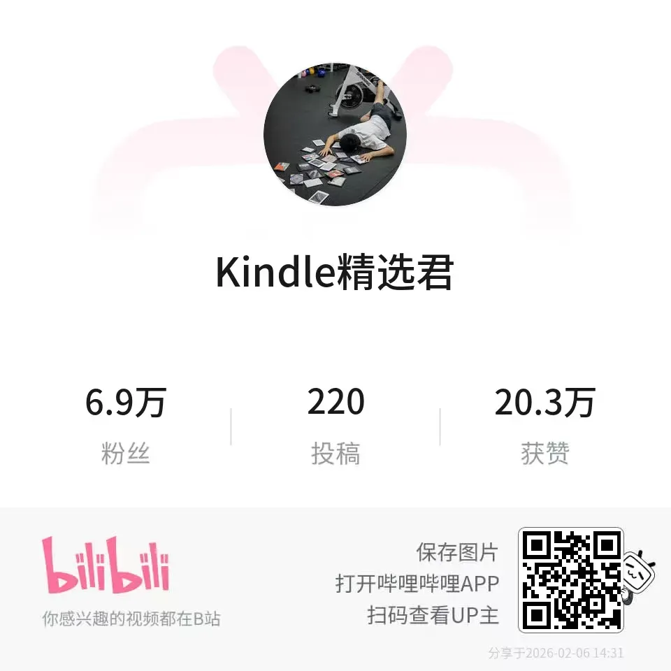 我的B站也在更新,欢迎去那关注我啊~(搜索:Kindle精选君,也可以扫描下方的二维码关注)