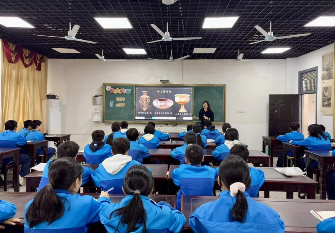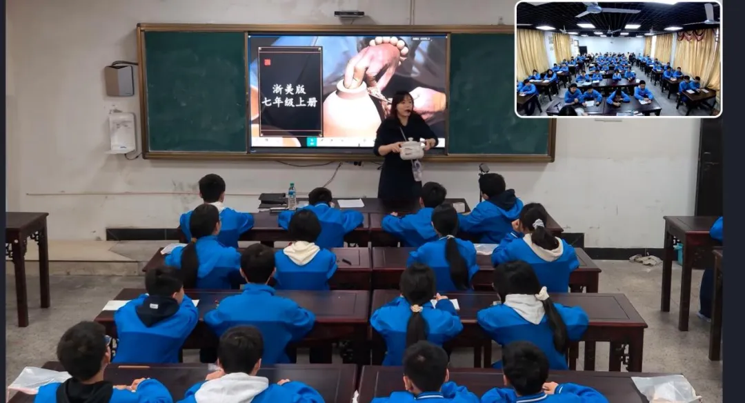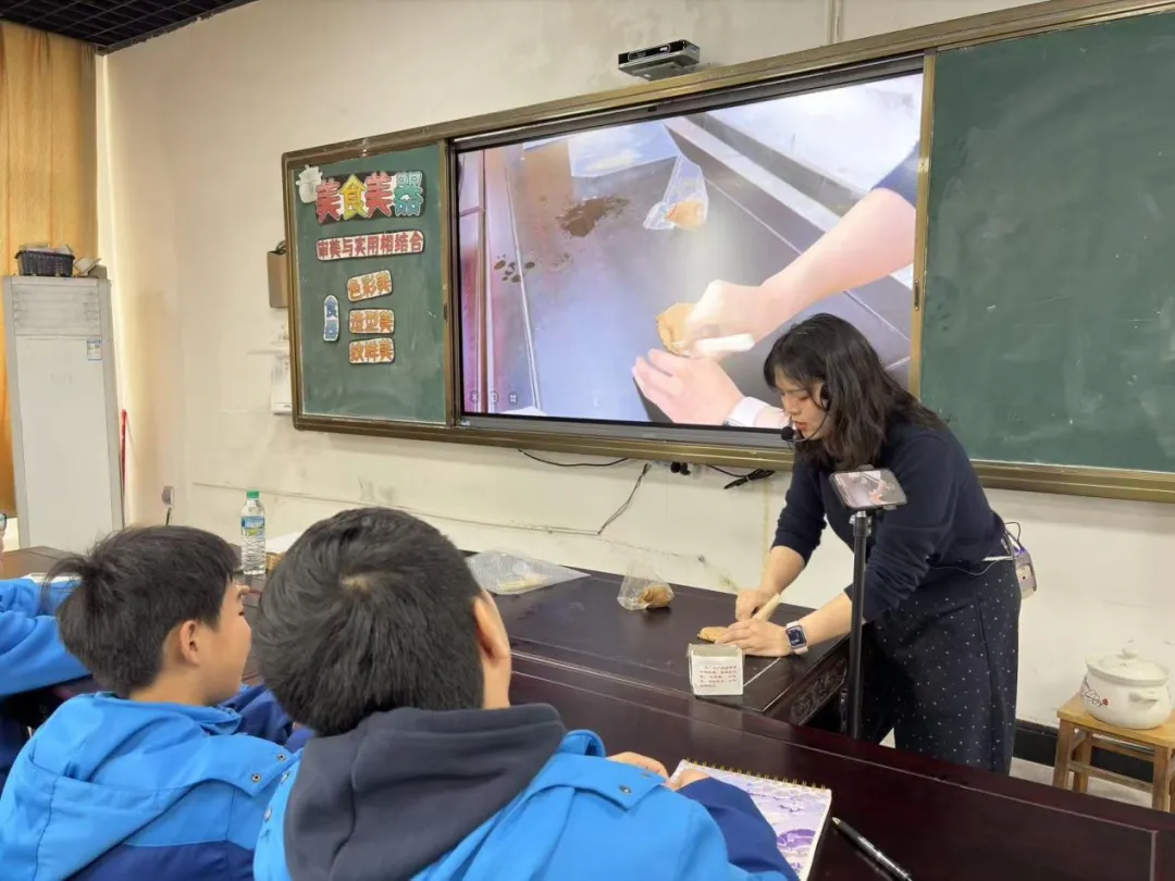 本次公开课由初中美术教师孔瑶执教,课堂巧妙融入黎川瓷煲这一本土特色文化资源,构建了兼具趣味性、实践性与文化性的美术课堂。课堂伊始,教师通过播放黎川瓷煲制作工艺短视频、展示本地特色瓷煲等实物,迅速吸引学生注意力,激发学生探索欲望。