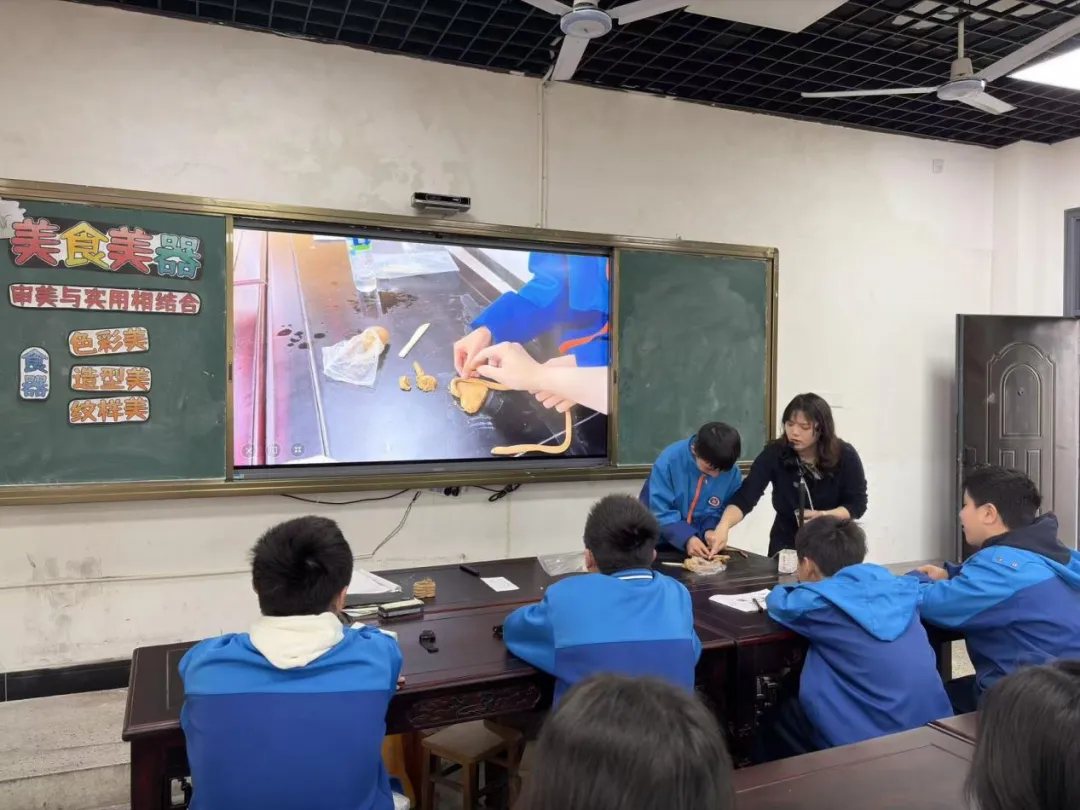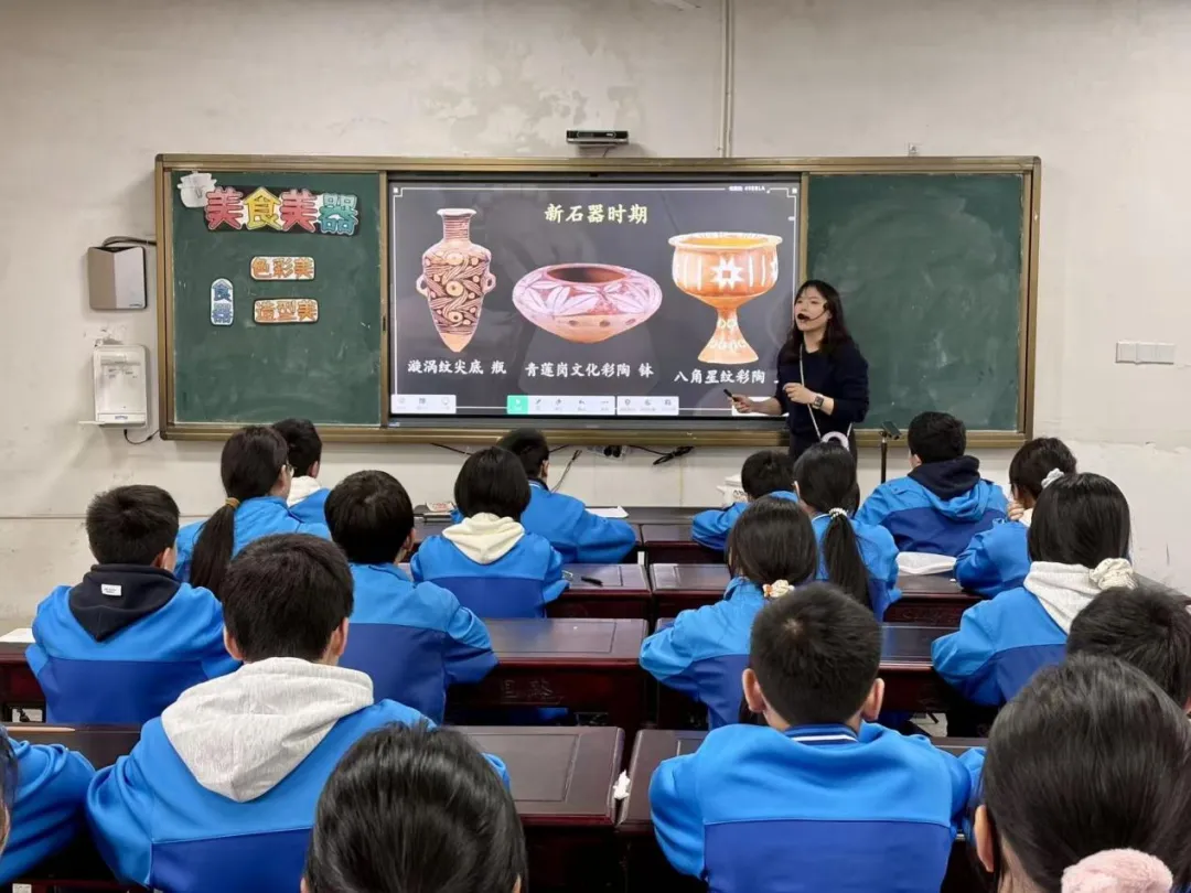 为深化美术教育教学改革,挖掘地方文化,切实提升我校艺术组教师的课堂教学能力与课程开发水平。近日,我校艺术教研组开展了以《美食美器》为主题的公开课暨希沃课堂智能反馈系统应用研讨教学活动,全体艺术组教师参与听课、评课交流。