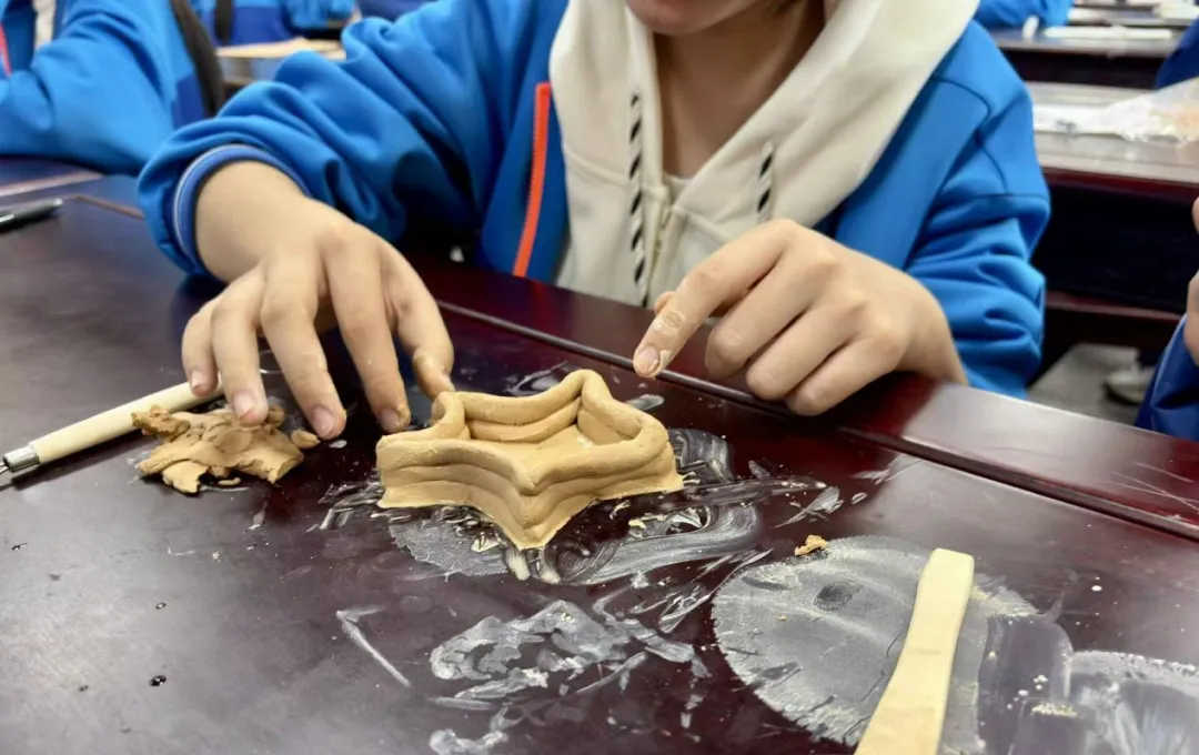 课堂实践环节,教师利用希沃智能直播示范盘泥条的制作过程;接着让学生们进行小组合作,有的搓泥条,有的制作装饰物,充分发挥创意与想象力,不少学生还借鉴了黎川瓷煲的造型,让作品充满本土文化韵味。
