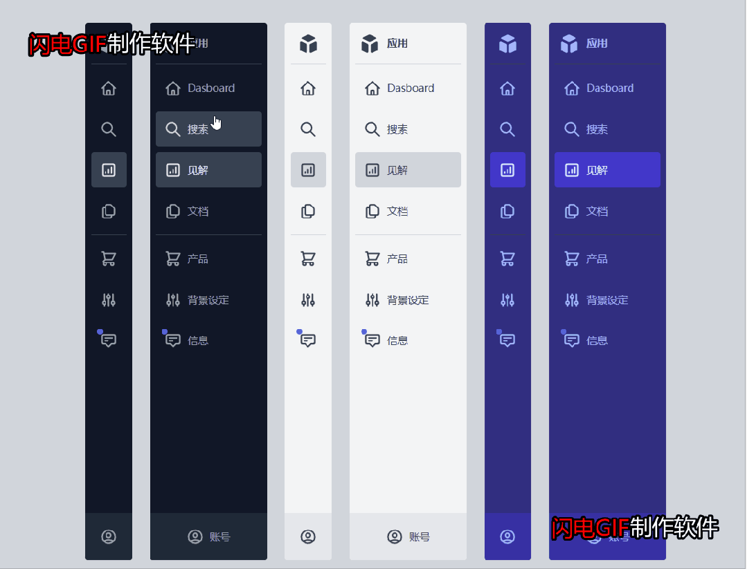 <!DOCTYPE html><htmllang="en" ><head><metacharset="UTF-8"><title>Tailwind样式App管理系统左侧菜单</title><style>.rotate-45 {--transform-rotate: 45deg;transform: rotate(45deg);}.group:hover .group-hover\:flex {display: flex;}</style><linkrel='stylesheet'href='https://cdnjs.cloudflare.com/ajax/libs/tailwindcss/2.0.1/tailwind.min.css'></head><body><!-- partial:index.partial.html --><bodyclass="flex items-center justify-center w-screen h-screen p-10 space-x-6 bg-gray-300"><!-- Component Start --><divclass="flex flex-col items-center w-16 h-full overflow-hidden text-gray-400 bg-gray-900 rounded"><aclass="flex items-center justify-center mt-3"href="#"><svgclass="w-8 h-8 fill-current"xmlns="http://www.w3.org/2000/svg"viewBox="0 0 20 20"fill="currentColor"><pathd="M11 17a1 1 0 001.447.894l4-2A1 1 0 0017 15V9.236a1 1 0 00-1.447-.894l-4 2a1 1 0 00-.553.894V17zM15.211 6.276a1 1 0 000-1.788l-4.764-2.382a1 1 0 00-.894 0L4.789 4.488a1 1 0 000 1.788l4.764 2.382a1 1 0 00.894 0l4.764-2.382zM4.447 8.342A1 1 0 003 9.236V15a1 1 0 00.553.894l4 2A1 1 0 009 17v-5.764a1 1 0 00-.553-.894l-4-2z" /></svg></a><divclass="flex flex-col items-center mt-3 border-t border-gray-700"><aclass="flex items-center justify-center w-12 h-12 mt-2 rounded hover:bg-gray-700 hover:text-gray-300"href="#"><svgclass="w-6 h-6 stroke-current"xmlns="http://www.w3.org/2000/svg"fill="none"viewBox="0 0 24 24"stroke="currentColor"><pathstroke-linecap="round"stroke-linejoin="round"stroke-width="2"d="M3 12l2-2m0 0l7-7 7 7M5 10v10a1 1 0 001 1h3m10-11l2 2m-2-2v10a1 1 0 01-1 1h-3m-6 0a1 1 0 001-1v-4a1 1 0 011-1h2a1 1 0 011 1v4a1 1 0 001 1m-6 0h6" /></svg></a><aclass="flex items-center justify-center w-12 h-12 mt-2 rounded hover:bg-gray-700 hover:text-gray-300"href="#"><svgclass="w-6 h-6 stroke-current"xmlns="http://www.w3.org/2000/svg"fill="none"viewBox="0 0 24 24"stroke="currentColor"><pathstroke-linecap="round"stroke-linejoin="round"stroke-width="2"d="M21 21l-6-6m2-5a7 7 0 11-14 0 7 7 0 0114 0z" /></svg></a><aclass="flex items-center justify-center w-12 h-12 mt-2 text-gray-200 bg-gray-700 rounded"href="#"><svgclass="w-6 h-6 stroke-current"xmlns="http://www.w3.org/2000/svg"fill="none"viewBox="0 0 24 24"stroke="currentColor"><pathstroke-linecap="round"stroke-linejoin="round"stroke-width="2"d="M16 8v8m-4-5v5m-4-2v2m-2 4h12a2 2 0 002-2V6a2 2 0 00-2-2H6a2 2 0 00-2 2v12a2 2 0 002 2z" /></svg></a><aclass="flex items-center justify-center w-12 h-12 mt-2 rounded hover:bg-gray-700 hover:text-gray-300"href="#"><svgclass="w-6 h-6 stroke-current"xmlns="http://www.w3.org/2000/svg"fill="none"viewBox="0 0 24 24"stroke="currentColor"><pathstroke-linecap="round"stroke-linejoin="round"stroke-width="2"d="M8 7v8a2 2 0 002 2h6M8 7V5a2 2 0 012-2h4.586a1 1 0 01.707.293l4.414 4.414a1 1 0 01.293.707V15a2 2 0 01-2 2h-2M8 7H6a2 2 0 00-2 2v10a2 2 0 002 2h8a2 2 0 002-2v-2" /></svg></a></div><divclass="flex flex-col items-center mt-2 border-t border-gray-700"><aclass="flex items-center justify-center w-12 h-12 mt-2 rounded hover:bg-gray-700 hover:text-gray-300"href="#"><svgclass="w-6 h-6 stroke-current"xmlns="http://www.w3.org/2000/svg"fill="none"viewBox="0 0 24 24"stroke="currentColor"><pathstroke-linecap="round"stroke-linejoin="round"stroke-width="2"d="M3 3h2l.4 2M7 13h10l4-8H5.4M7 13L5.4 5M7 13l-2.293 2.293c-.63.63-.184 1.707.707 1.707H17m0 0a2 2 0 100 4 2 2 0 000-4zm-8 2a2 2 0 11-4 0 2 2 0 014 0z" /></svg></a><aclass="flex items-center justify-center w-12 h-12 mt-2 rounded hover:bg-gray-700 hover:text-gray-300"href="#"><svgclass="w-6 h-6 stroke-current"xmlns="http://www.w3.org/2000/svg"fill="none"viewBox="0 0 24 24"stroke="currentColor"><pathstroke-linecap="round"stroke-linejoin="round"stroke-width="2"d="M12 6V4m0 2a2 2 0 100 4m0-4a2 2 0 110 4m-6 8a2 2 0 100-4m0 4a2 2 0 110-4m0 4v2m0-6V4m6 6v10m6-2a2 2 0 100-4m0 4a2 2 0 110-4m0 4v2m0-6V4" /></svg></a><aclass="relative flex items-center justify-center w-12 h-12 mt-2 rounded hover:bg-gray-700 hover:text-gray-300"href="#"><svgclass="w-6 h-6 stroke-current"xmlns="http://www.w3.org/2000/svg"fill="none"viewBox="0 0 24 24"stroke="currentColor"><pathstroke-linecap="round"stroke-linejoin="round"stroke-width="2"d="M7 8h10M7 12h4m1 8l-4-4H5a2 2 0 01-2-2V6a2 2 0 012-2h14a2 2 0 012 2v8a2 2 0 01-2 2h-3l-4 4z" /></svg><spanclass="absolute top-0 left-0 w-2 h-2 mt-2 ml-2 bg-indigo-500 rounded-full"></span></a></div><aclass="flex items-center justify-center w-16 h-16 mt-auto bg-gray-800 hover:bg-gray-700 hover:text-gray-300"href="#"><svgclass="w-6 h-6 stroke-current"xmlns="http://www.w3.org/2000/svg"fill="none"viewBox="0 0 24 24"stroke="currentColor"><pathstroke-linecap="round"stroke-linejoin="round"stroke-width="2"d="M5.121 17.804A13.937 13.937 0 0112 16c2.5 0 4.847.655 6.879 1.804M15 10a3 3 0 11-6 0 3 3 0 016 0zm6 2a9 9 0 11-18 0 9 9 0 0118 0z" /></svg></a></div><!-- Component End --><!-- Component Start --><divclass="flex flex-col items-center w-40 h-full overflow-hidden text-gray-400 bg-gray-900 rounded"><aclass="flex items-center w-full px-3 mt-3"href="#"><svgclass="w-8 h-8 fill-current"xmlns="http://www.w3.org/2000/svg"viewBox="0 0 20 20"fill="currentColor"><pathd="M11 17a1 1 0 001.447.894l4-2A1 1 0 0017 15V9.236a1 1 0 00-1.447-.894l-4 2a1 1 0 00-.553.894V17zM15.211 6.276a1 1 0 000-1.788l-4.764-2.382a1 1 0 00-.894 0L4.789 4.488a1 1 0 000 1.788l4.764 2.382a1 1 0 00.894 0l4.764-2.382zM4.447 8.342A1 1 0 003 9.236V15a1 1 0 00.553.894l4 2A1 1 0 009 17v-5.764a1 1 0 00-.553-.894l-4-2z" /></svg><spanclass="ml-2 text-sm font-bold">The App</span></a><divclass="w-full px-2"><divclass="flex flex-col items-center w-full mt-3 border-t border-gray-700"><aclass="flex items-center w-full h-12 px-3 mt-2 rounded hover:bg-gray-700 hover:text-gray-300"href="#"><svgclass="w-6 h-6 stroke-current"xmlns="http://www.w3.org/2000/svg"fill="none"viewBox="0 0 24 24"stroke="currentColor"><pathstroke-linecap="round"stroke-linejoin="round"stroke-width="2"d="M3 12l2-2m0 0l7-7 7 7M5 10v10a1 1 0 001 1h3m10-11l2 2m-2-2v10a1 1 0 01-1 1h-3m-6 0a1 1 0 001-1v-4a1 