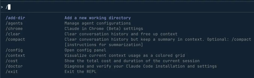 在输入框中输入 /help 可以查看所有可用功能: