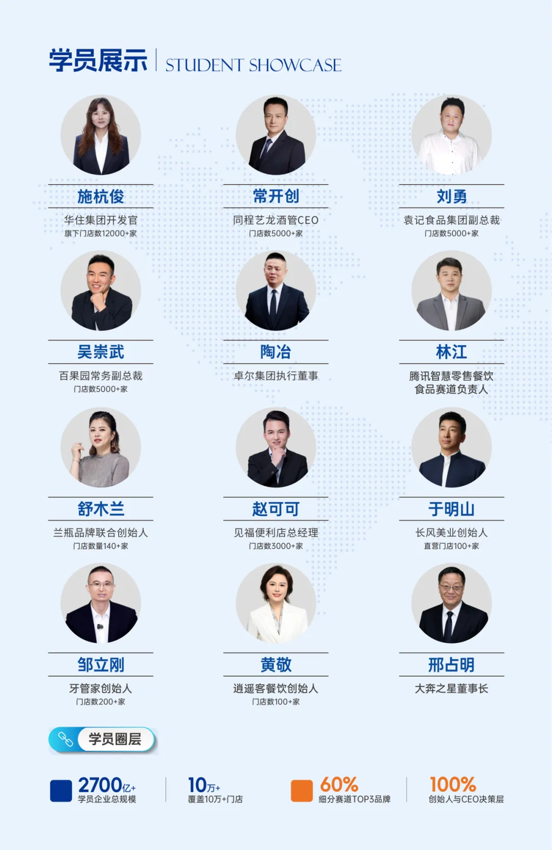 那么,欢迎来到全球连锁MBA的课堂,与专家座谈论道,与同学品茶言欢,共同开创人工智能时代的万店赢利新纪元!