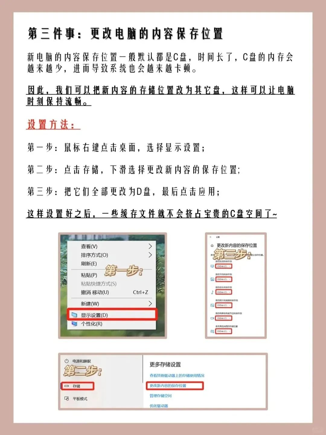 设置完成后,新安装的应用、保存的文档都会自动存储到指定位置,C盘从此专心做它的"系统管家"。