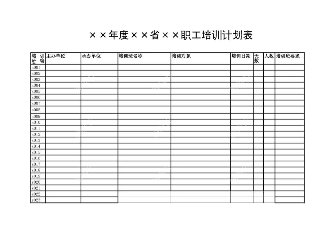 这份××年度××省××职工培训计划表,是企业培训负责人、工会行政人员的专业标准化规划工具。表格以白底黑字的简洁风格、规整清晰的布局设计,列标题设置九大核心栏目,覆盖了从培训主体权责、项目定位到执行细节、考核要求的全流程信息。模板预留37个完整的培训班填写位,完全满足企业、行业或区域内批量培训的规划需求,无需复杂的二次设计,可直接上手填写,快速搭建年度职工培训体系,有效提升培训管理的规范性与工作效率。