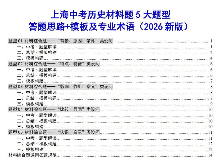 距离中考越来越近了,今天我们给大家分享上海中考历史【材料综合题】5大题型答题模板+专业术语,助力大家在考试中拿下高分甚至满分!