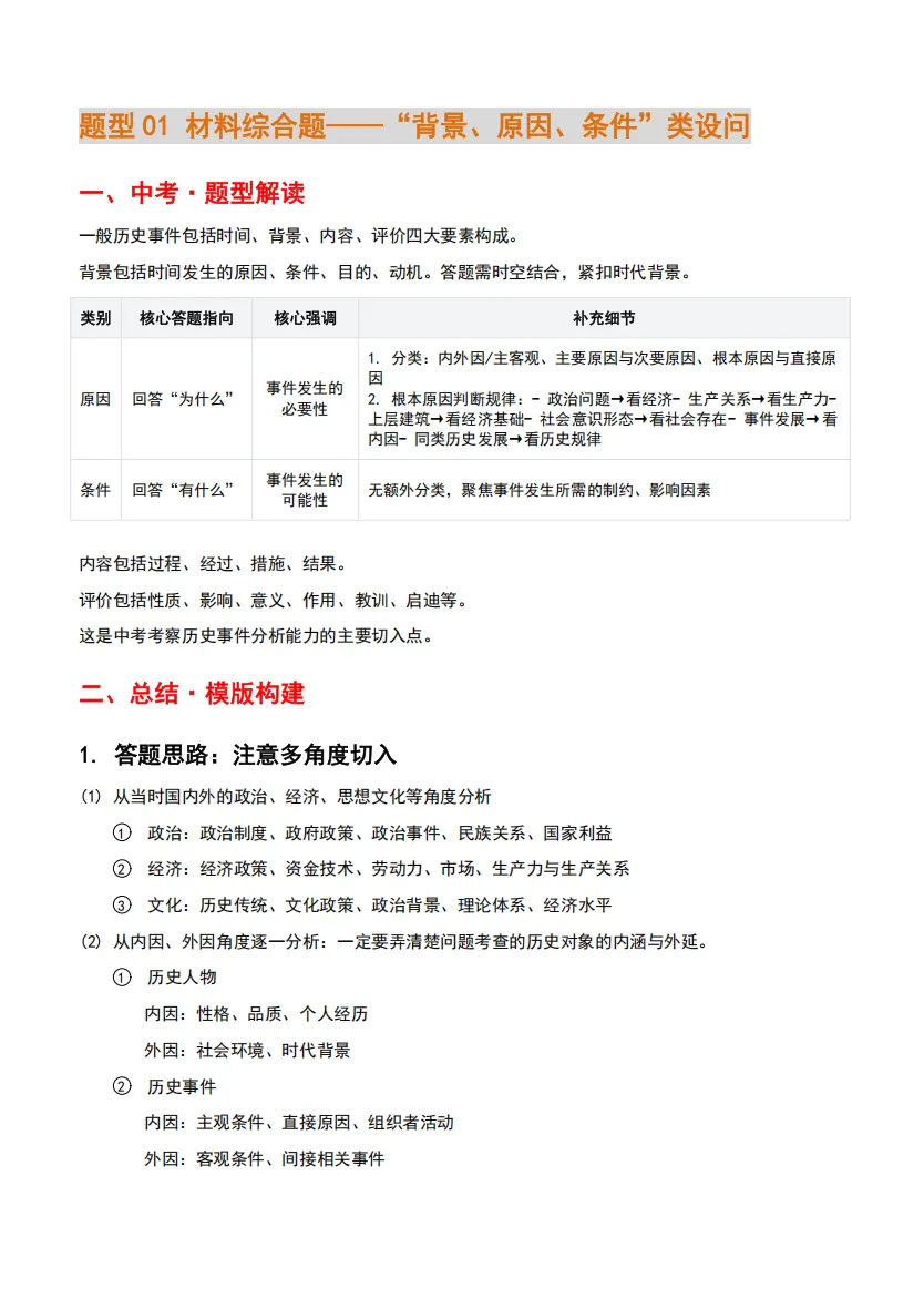 而中考历史中【材料综合题】对很多同学来讲是一大难点,该题型是考查学生历史思维、分析能力和知识综合运用的重要题型!
