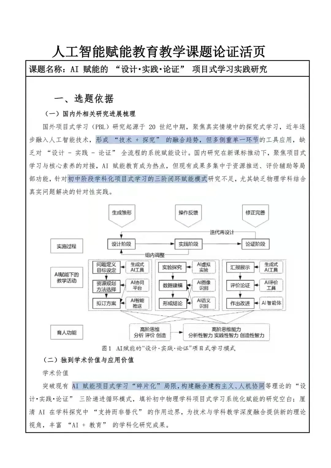今天就给大家分享一份AI赋能教育课题申报书范文,课题研究围绕AI 赋能的 “设计・实践・论证” 项目式实践研究 —— 以初中物理学科为例。#教学改革课题 #教改课题 #教改项目申报书 #人工智能教改课题 #课题申报书怎么写 #教师课题 #教师评职称 #省级课题 #人工智能课题 #人工智能赋能教育教改课题