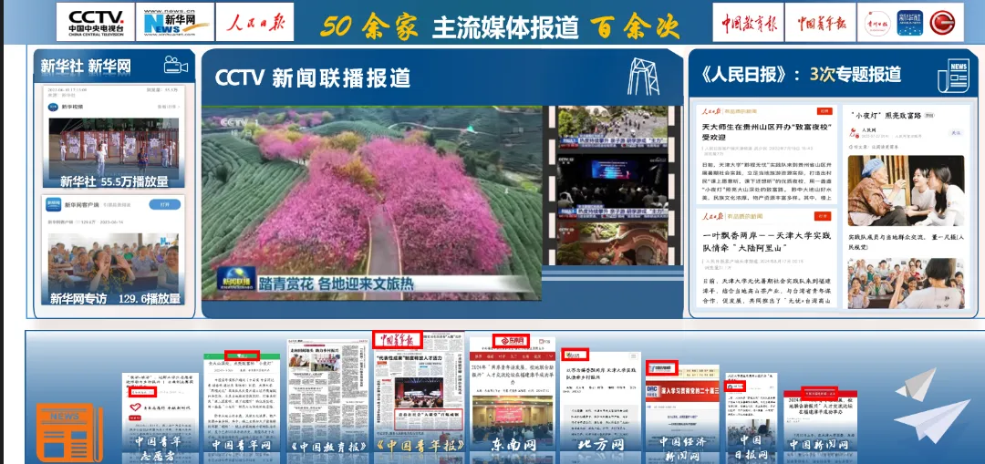 实干笃行,奉献青春。用40余万字的调研报告记录田野脉搏,55次被采纳的成果见证了实践的分量,30余万元的农文旅增收更彰显了青春的价值。团队获评“2025年团中央‘三下乡’重点联系团队”“天津市‘三下乡’社会实践优秀团队”“天津市新时代实践行先进集体标兵”等数十项荣誉,实践事迹受人民日报、新华社、CCTV等全国媒体报道百余次。