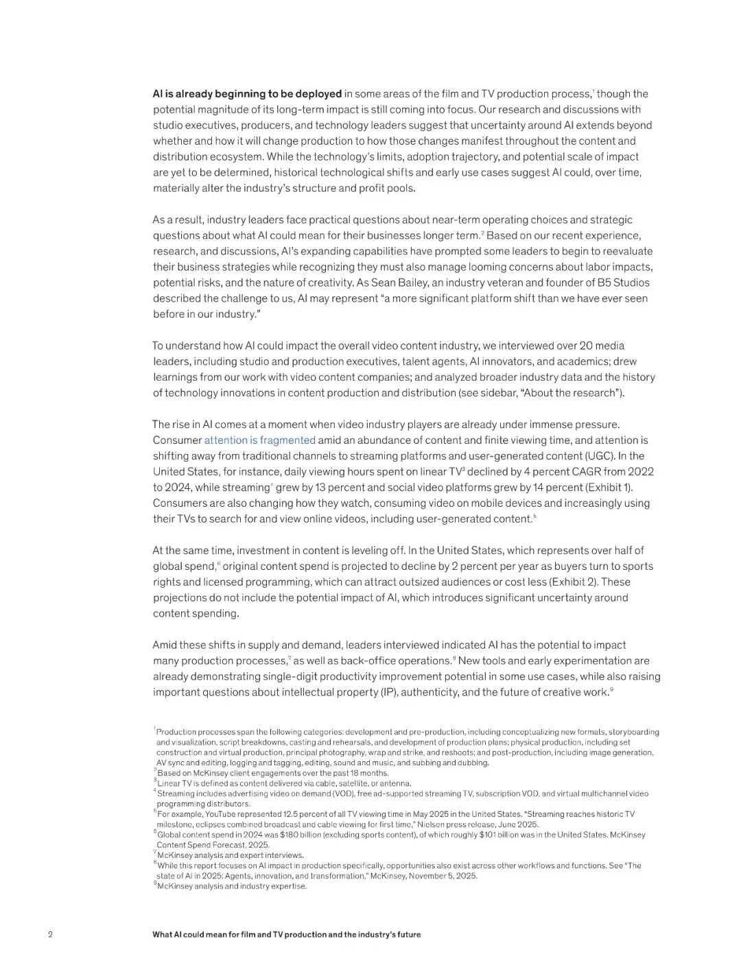 报告延伸:2026人工智能AI对影视制作及行业未来的影响研究报告 出 品 方:麦肯锡