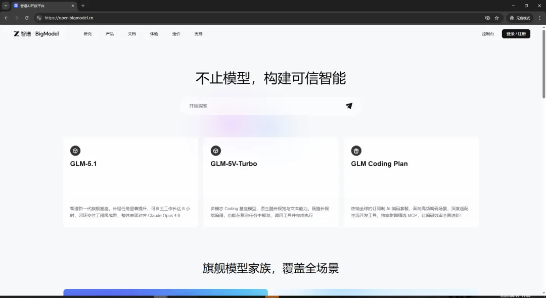 打开 智谱AI开放平台 https://open.bigmodel.cn/