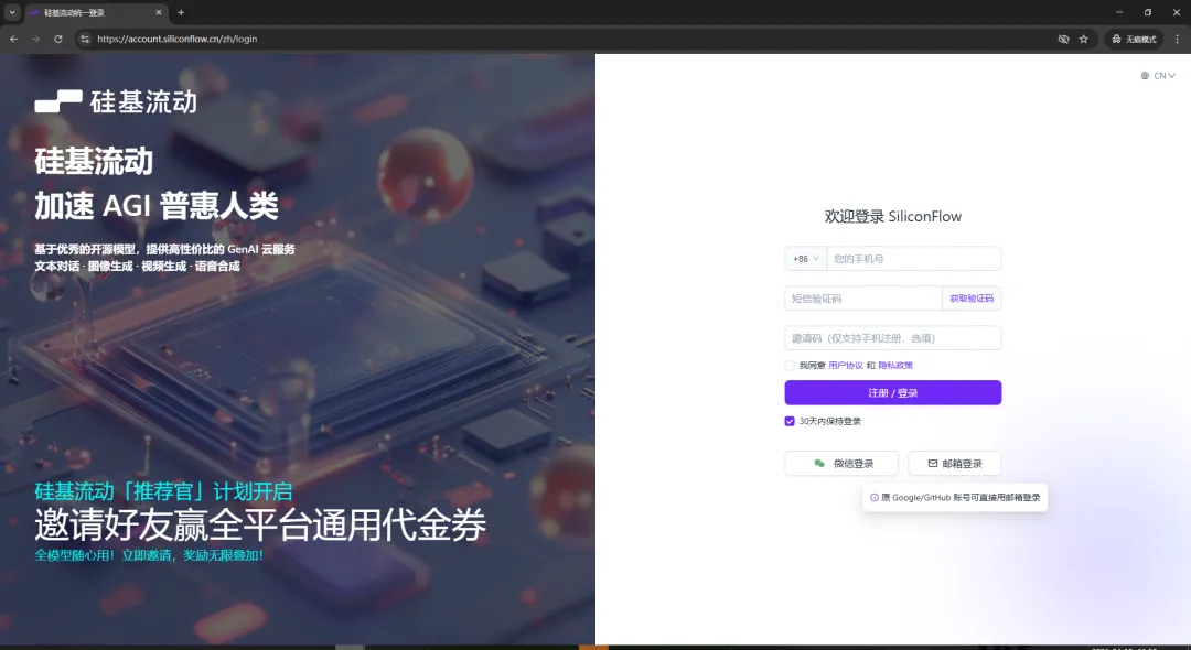 (会自动跳转至https://account.siliconflow.cn/zh/login)