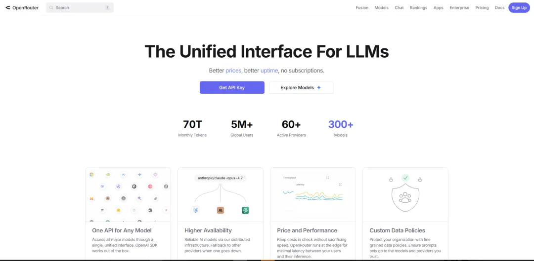 支持模型:约 29 个免费模型:DeepSeek V3/R1 、Llama 系列、Qwen 系列、Gemini Flash 等,模型名加 :free 后缀即为免费模型(如 deepseek/deepseek-r1:free)