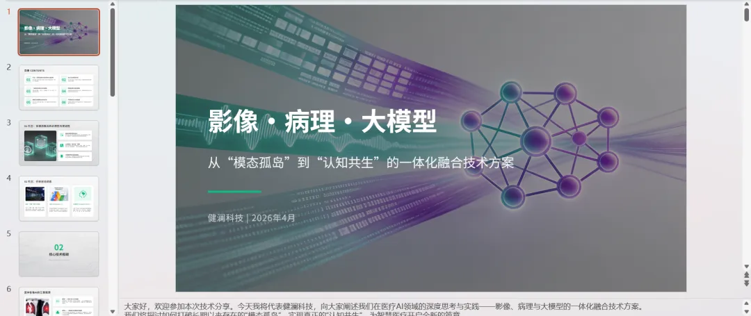 关键词:健澜科技;医疗影像AI;病理AI;国产开源大模型;多模态融合;认知共生