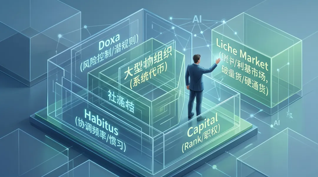 潜规则(Doxa):也就是这里的“共识”。比如在有些求稳的系统里,规则就是“不出错优于立大功”。你非要跑去秀你的极致创新,那就是在挑战场域的引力,不摔你摔谁?
