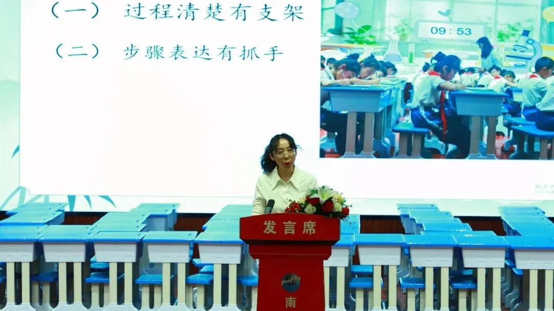 随后,南屏小学王芳校长作专业引领,立足当下语文教学实际,为后续习作教学提质、AI与语文课堂深度融合理清思路、凝聚共识。