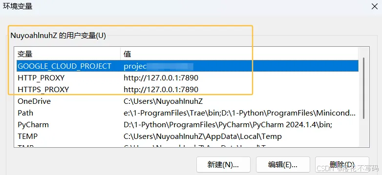 变量名 输入:HTTPS_PROXY 变量值 输入:http://127.0.0.1:7890